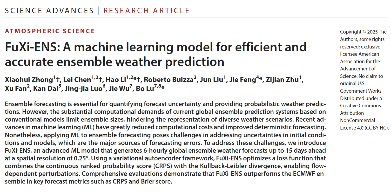 FuXi-ENS: A machine learning model for efficient and accurate ensemble weather prediction